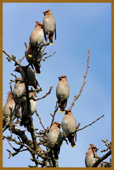 Ich holte mir die Tüte her und packte den Leberkäsbriegel aus, könnt ihr mitfühlen was das für ein Duft war? Ich biss mir ein grosses Stück herunter, doch der bissen blieb mir fast im halse stecken. Nicht weil er zu gross war nein weil genau in diesem Moment ein Schwarm von Seidenschwänze in die Streuobstwiese eingeflogen ist. Ich habe in diesem Fall natürlich den Leberkäsbriegel auf die Seite gelegt und meine Fotoausrüstung ausgepackt und fotografiert. Nebenbei hatte ich meinen Kollegen angerufen und gesagt, dass ich Seidenschwänze gefunden habe. Denn ich wusste, dass auch er auf der Suche nach den Vögeln war. Ich konnte dann mit zwei Kollegen über 14 Tage die Seidenschwänze fotografieren, in einem Umkreis von ca. 10 Kilometer.